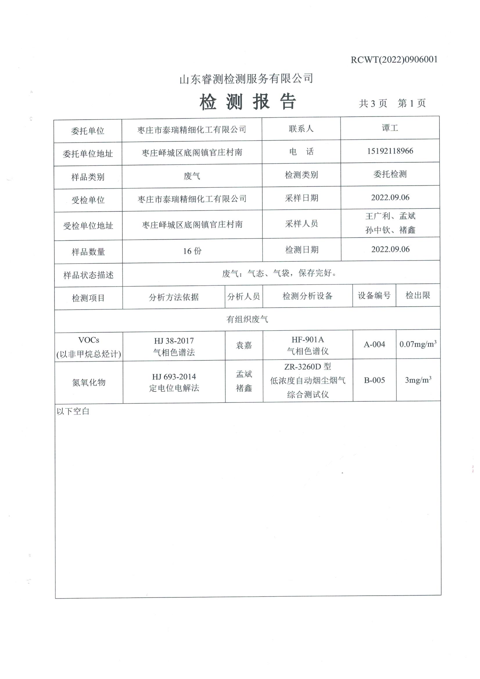 2022年9月份環(huán)保檢測報告