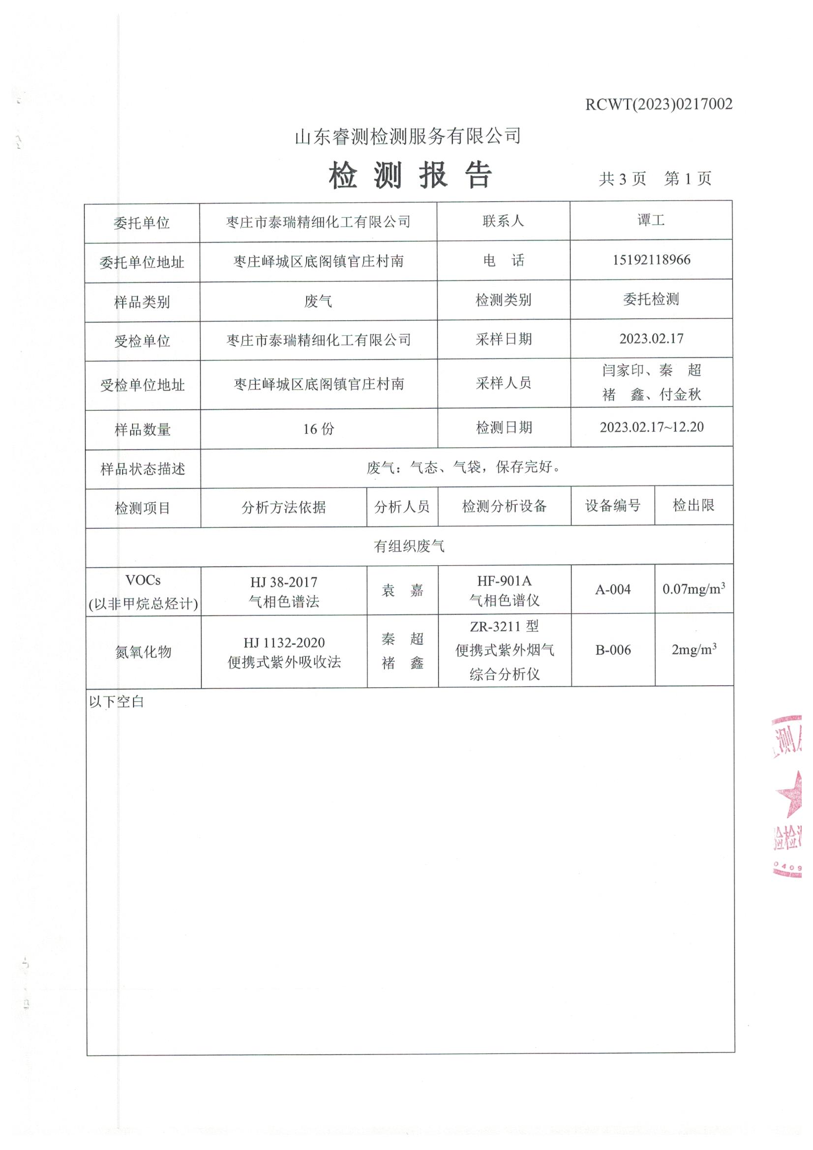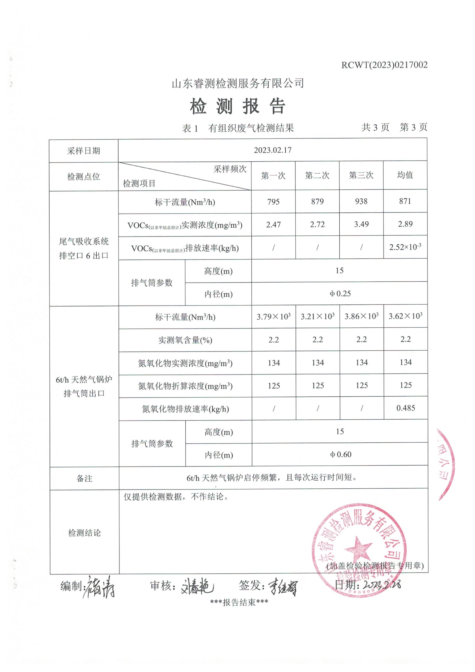 2023年2月份自行檢測報(bào)告