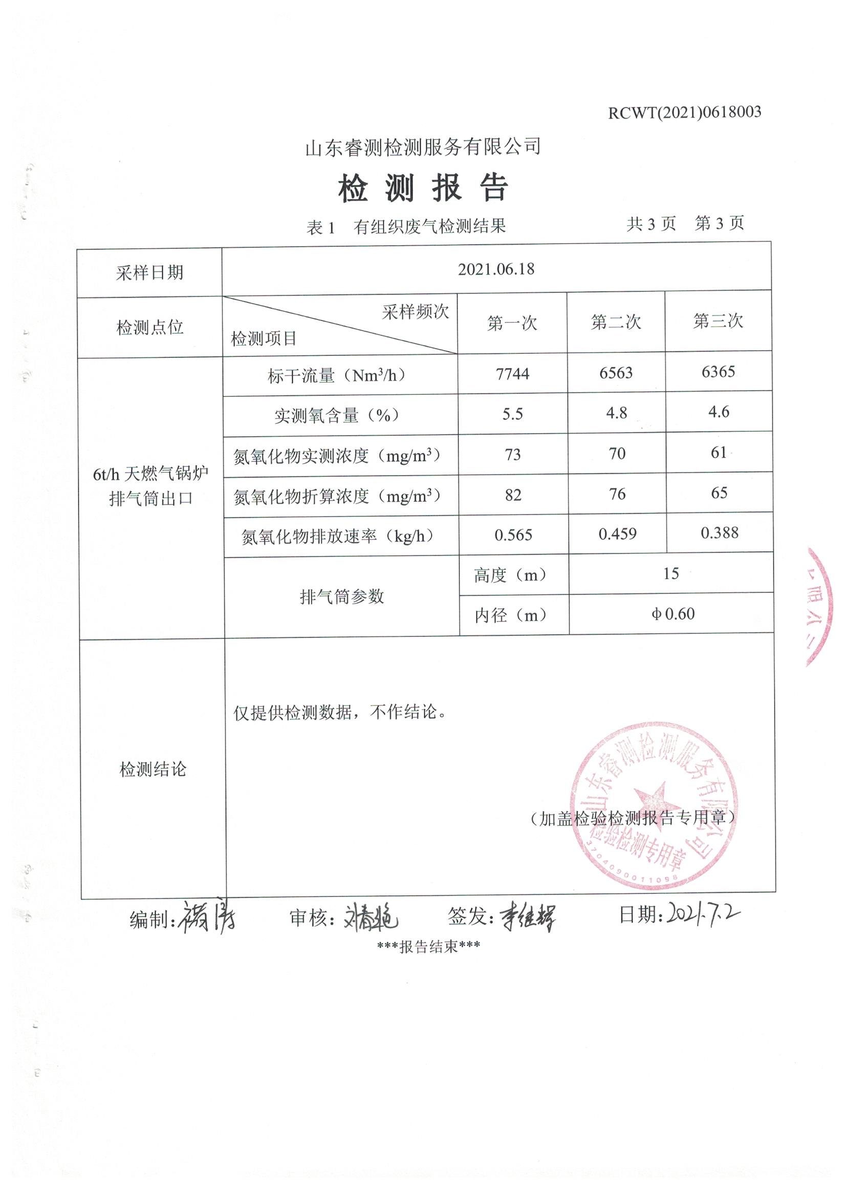 2021年6月份自行檢測(cè)報(bào)告