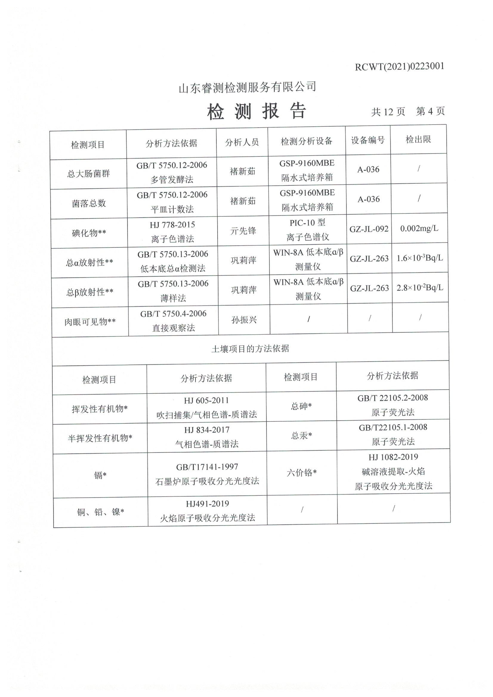2021年土壤和地下水自行檢測(cè)報(bào)告