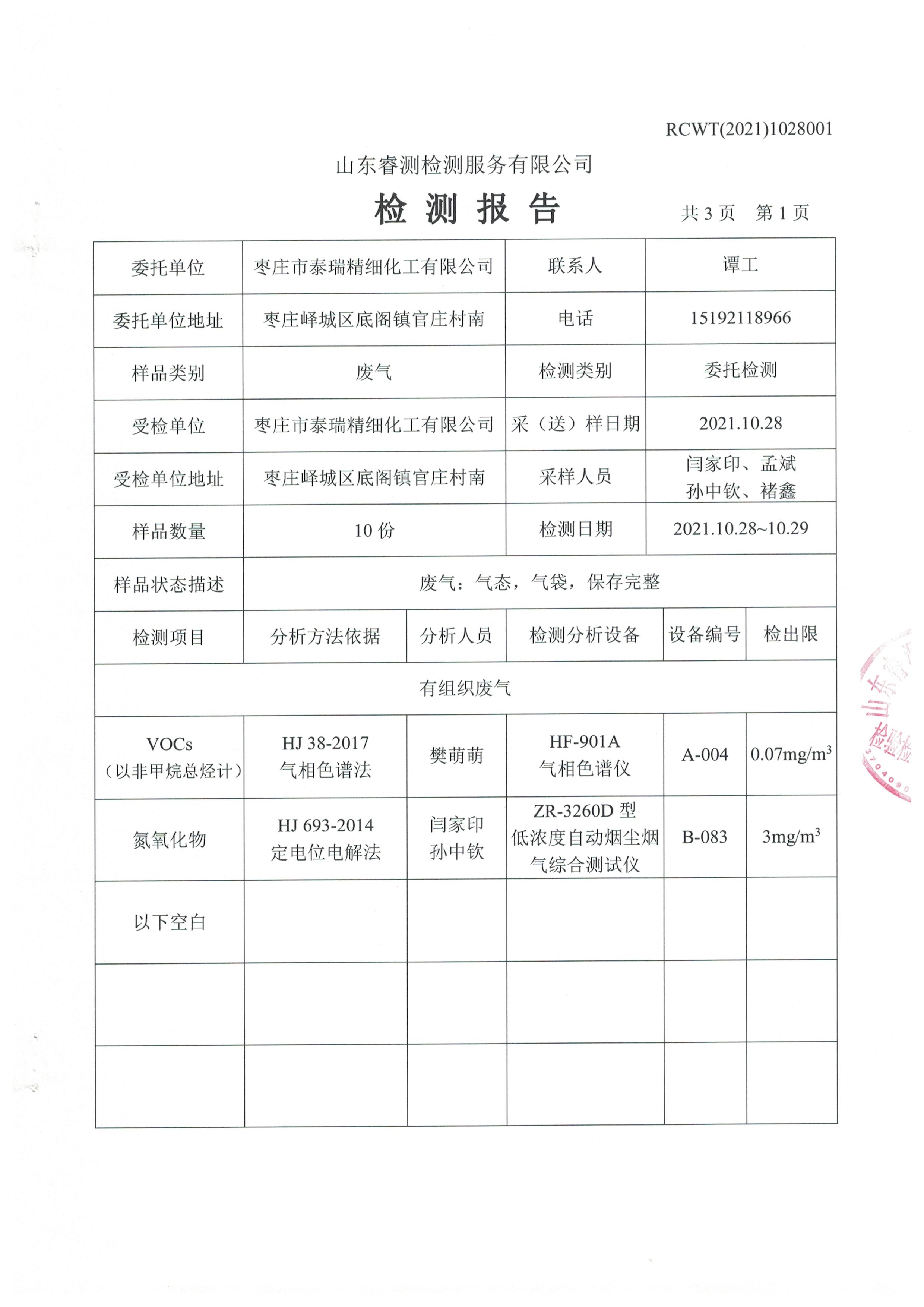 2021年10月份自行檢測(cè)報(bào)告